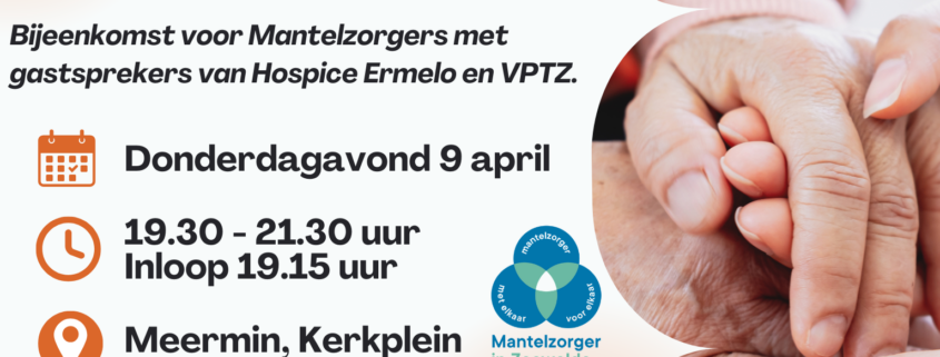Deze avond zullen twee gastsprekers naar de Meermin komen. Laura Jansen van het Willem Holtrop Hospice uit Ermelo komt vertellen over het Hospice. Waarom zou je hiervoor kiezen en wat gebeurt hier dan? Rita Beulens van VPTZ team Zeewolde komt vertellen wat het VPTZ team kan betekenen in de laatste levensfase. Welke ondersteuning kunnen zij bieden aan de mantelzorger en zijn/haar familie?