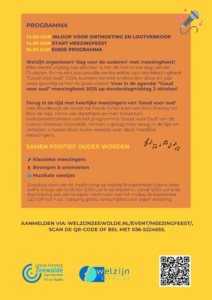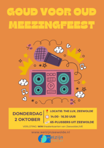 Kom je ook? Donderdagmiddag 2 oktober 2025: “Goud voor oud” Meezingfeest. Na de succesvolle eerste editie van vorig jaar, komt er ook dit jaar weer een gezellig Meezingfeest 65+.